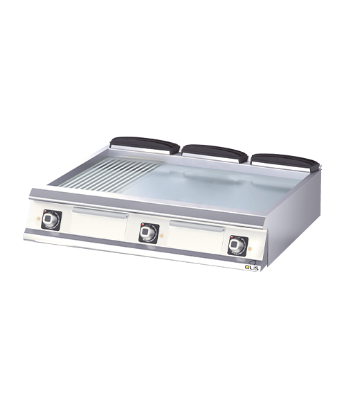 • 15 mm dicke Bratplatte aus Edelstahl AISI 430 oder 50 Mikron Hartchrom.